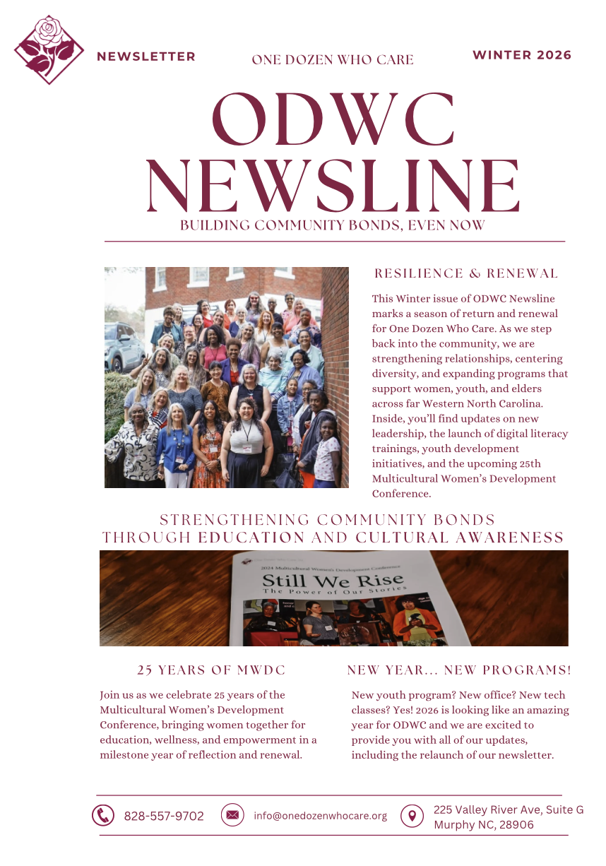 © 2026 All rights reserved. One Dozen Who Care Inc is a non-profit 501c3 corporation | Mail: 225 Valley River Ave Suite G Box 6, Murphy, NC 28906 | (828) 557-9702 | Email us